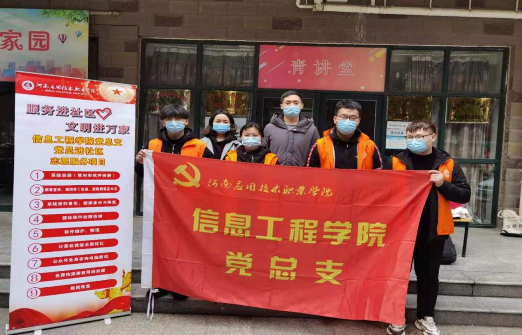 为进一步发扬党员先锋模范作用,深入学习贯彻党的十九届五中全会精神,弘扬社会主义核心价值观,推进党员志愿服务及创先争优活动,信息工程学院党总支于2020年11月24日组织党员教师及入党积极分子到郑州市中原区城开社区开展党员“服务进社区,文明进万家”信息技术服务活动。