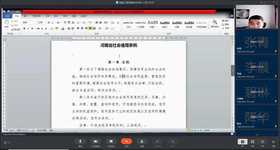为进一步加强《河南省社会信用条例》贯彻落实,深化条例宣传教育工作,营造学条例、用条例、守条例的浓厚氛围,增强全体教职工社会诚信意识,按照学校要求,信息工程学院党总支于2020年7月6日下午组织东西校区全体教职工召开钉钉视频会议,开展了学习贯彻《河南省社会信用条例》活动。