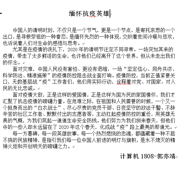 清明时节忆先烈、倡导文明健康的祭祀新风。信息工程学院18级入党积极分子以“撰写缅怀文章、朗诵清明诗文(短视频或音频记录)、制作思念卡”等祭奠活动来表达对那些用生命为我们带来春天的英雄们:“愿寒冬不再凛冽、愿春日常在、山河犹在。”、“向逝者默哀 向英雄致敬。”
