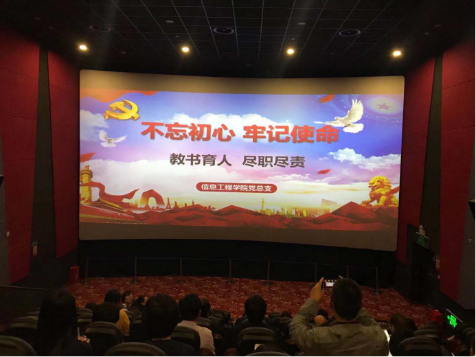此次观影活动是信息工程学院党总支组织的“不忘初心 牢记使命”主题教育系列活动之一,影片展现了祖国的伟大与富强,激发了全体党员及教师的爱国主义情怀,同时进一步增强了自身使命感,不忘初心,牢记使命,教书育人,尽职尽责,为实现中华民族伟大复兴的中国梦不懈奋斗!