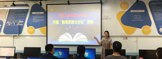 本次教育思想大讨论以习近平新时代中国特色社会主义思想为指导,深入学习贯彻习近平教育思想,贯彻落实高校思想政治工作会议精神,贯彻落实新时代全国职业院校教育工作会议精神,重点聚焦“培养什么样的人、如何培养人、为谁培养人”等问题,深入分析学院建设发展现状,进一步认识、理解和把握学院的专业定位和人才培养目标,坚持立德树人根本任务,主动适应职业教育发展的新形势、新要求,形成思想共识,回归常识、回归本分、回归初心、回归梦想,进一步巩固人才培养中心地位,努力提升人才培养质量。