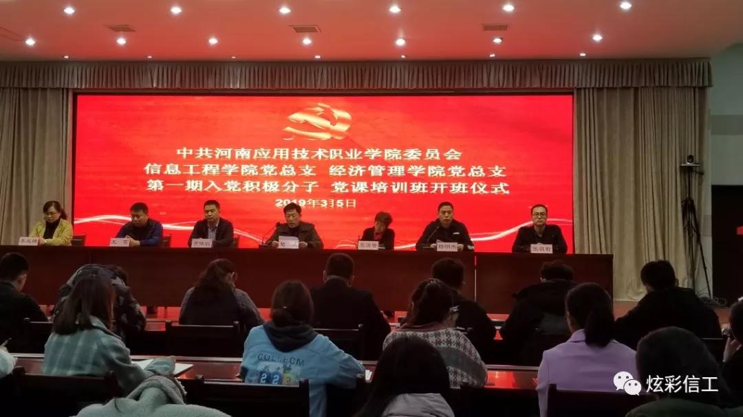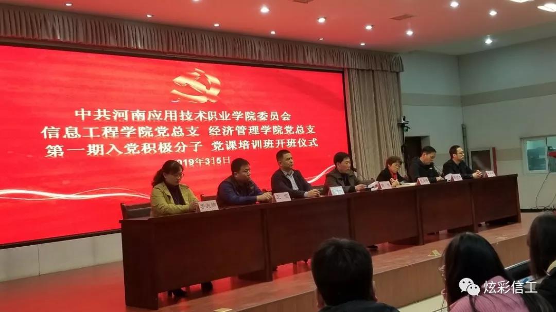 为提高入党积极分子的党性修养,进一步提高自身政治理论素质,加深对党的认识,2019年3月5日13:40,中共河南应用技术职业学院委员会信息工程学院党总支,经济管理学院党总支在学校E楼二楼会议室召开了第一期入党积极分子党课培训开班仪式。参加本次开班仪式的领导有:信息工程学院党总支书记楚斌老师、经济管理学院党总支书记袁清香老师、学校党委组织部副部长黄体锐老师、信息工程学院院长王雷老师、经济管理学院院长张召哲老师、经济管理学院党总支副书记李兆楠老师以及各党总支支委相关同志。开班仪式由信息工程学院党总支副书记杨明杰老师主持。