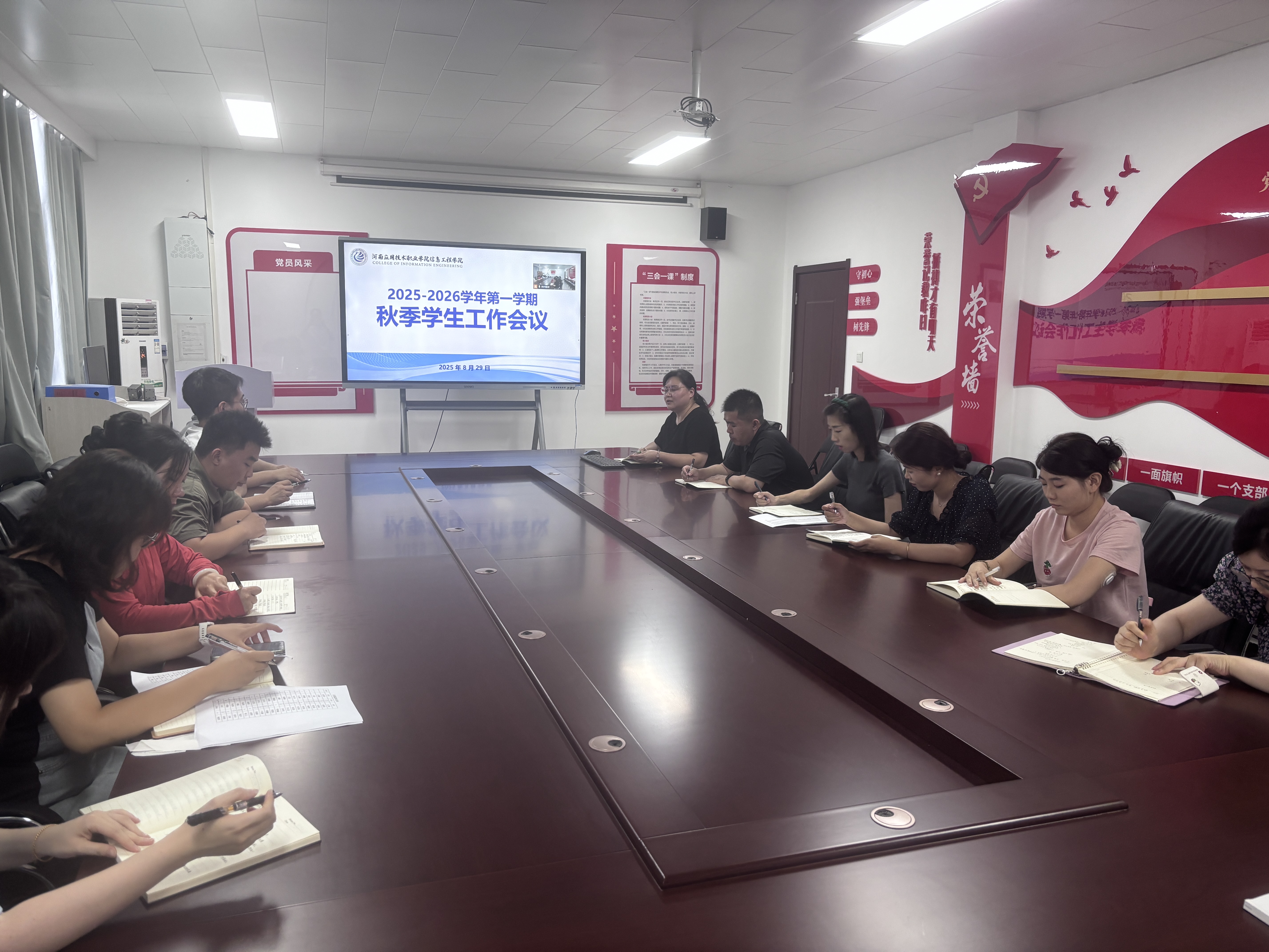 8月29日下午,信息工程学院在郑州校区A514、开封校区F302,召开2025-2026学年第一学期秋季学生工作会议。会议由党总支书记崔琳主持,全体专兼职辅导员参会。