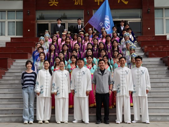 正如同学们高高举起的象征民族符号的坎肩刺绣,