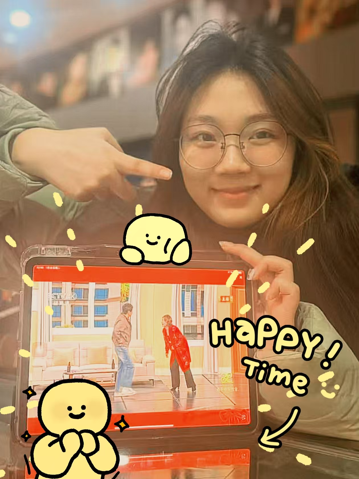 春晚开始啦!绚丽多彩的灯光,欢快激昂的音乐,载歌载舞,共同迎接新年的到来。