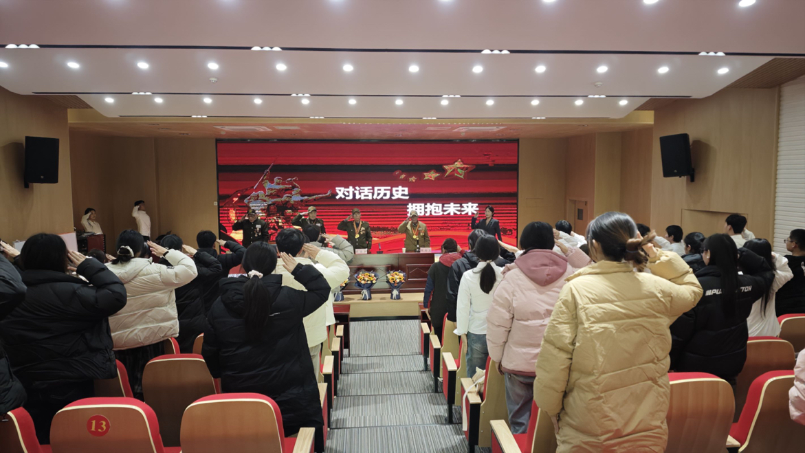 最后,我院青年学子们向曾经浴血奋战的志愿军老战士们行军礼。