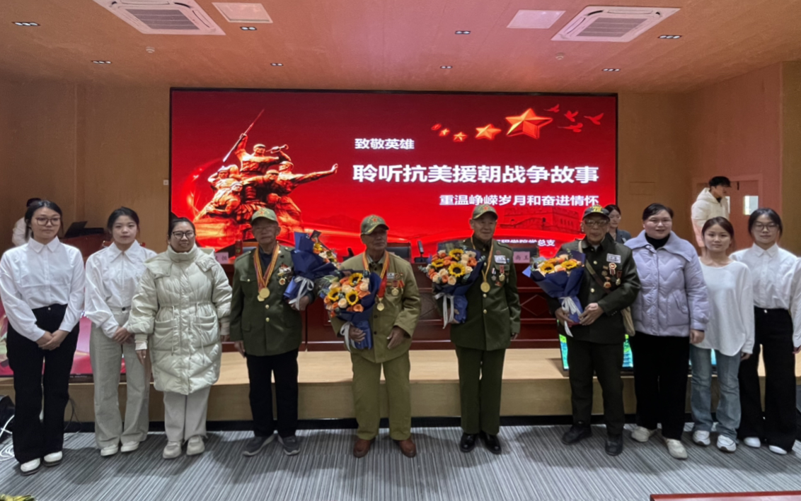 今年,是中国人民志愿军抗美援朝出国作战74周年,为进一步弘扬抗美援朝精神,信息工程学院党总支于2024年12月13日诚邀志愿军老战士张德银、吴尚玉、张茂恒、滕久国在开封校区D102教室,为青年学子们分享那段鸭绿江畔的艰苦岁月和感人故事,汲取和传承伟大抗美援朝精神。活动由学生会赵可昕主持,信息工程学院党总支书记崔琳、团总支书记冷月及青年学子代表参加活动。