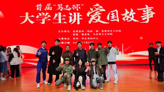 11月20日,河南应用技术职业学院首届“笃志杯”大学生讲爱国故事比赛在郑州校区活动中心大礼堂拉开帷幕,我院参赛队伍凭借《挺膺担当,强国有我》以超燃的表现、优异的成绩强势登顶!