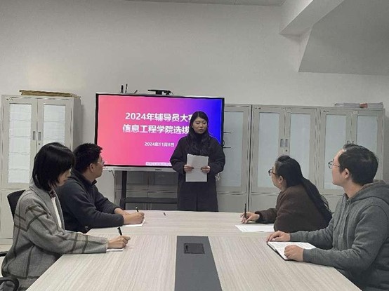 为提升学院辅导员的理论水平、职业能力和专业素养,信息工程学院于11月8日在郑州和开封同时举行2024年辅导员素质能力大赛选拔赛。比赛由信息工程学院党总支副书记蒋欣哲、学工办主任常昆和团总支书记冷月出席并担任评委。