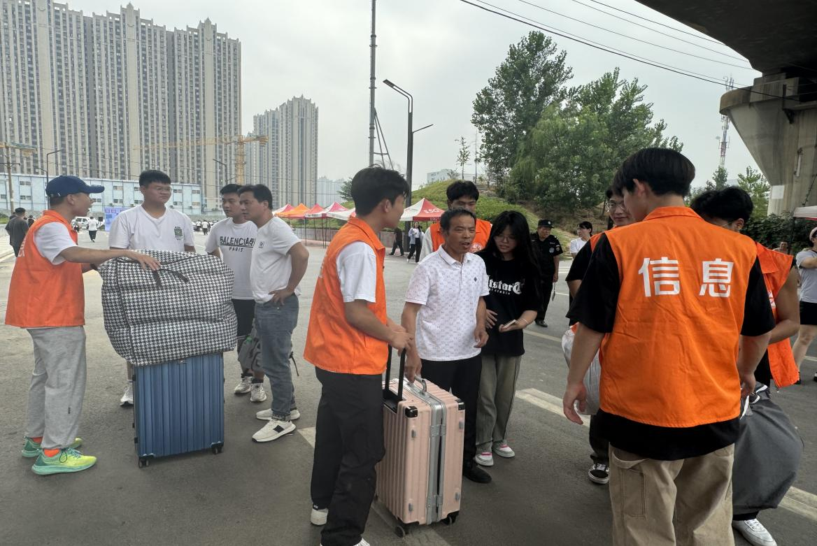 除党员志愿服务者之外,学院职工和其他志愿者们也一如既往坚守在志愿服务岗位上,活跃在迎新活动中,他们拧成“一股绳”,身着特色“文化衫”,战高温、斗酷暑、保安全,扎实有序开展各项重点工作,用汗水诠释着责任担当和奉献精神,为新生和家长入校做好服务保障。他们带领新同学办理报到,搬运行李,整理宿舍,介绍校园;为新生实时答疑解惑,分享校园生活,提供全面优化服务,有效缓解新生入学的紧张和焦虑,为即将入学的新生带来学院的温暖与祝福,让新生放心、家长舒心。