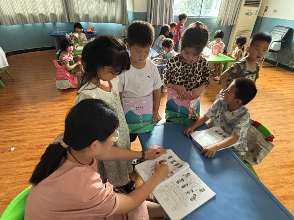 2024年8月5日,中加2301班王雅萍协助团队一起前往辉县市裴寨社区服务中心,制定详细的教学计划和活动方案,他们通过组织各种小组活动和竞赛,让孩子们在相互协作中学会尊重他人、理解他人,同时也让他们在成功中获得自信,在失败中学会坚强。