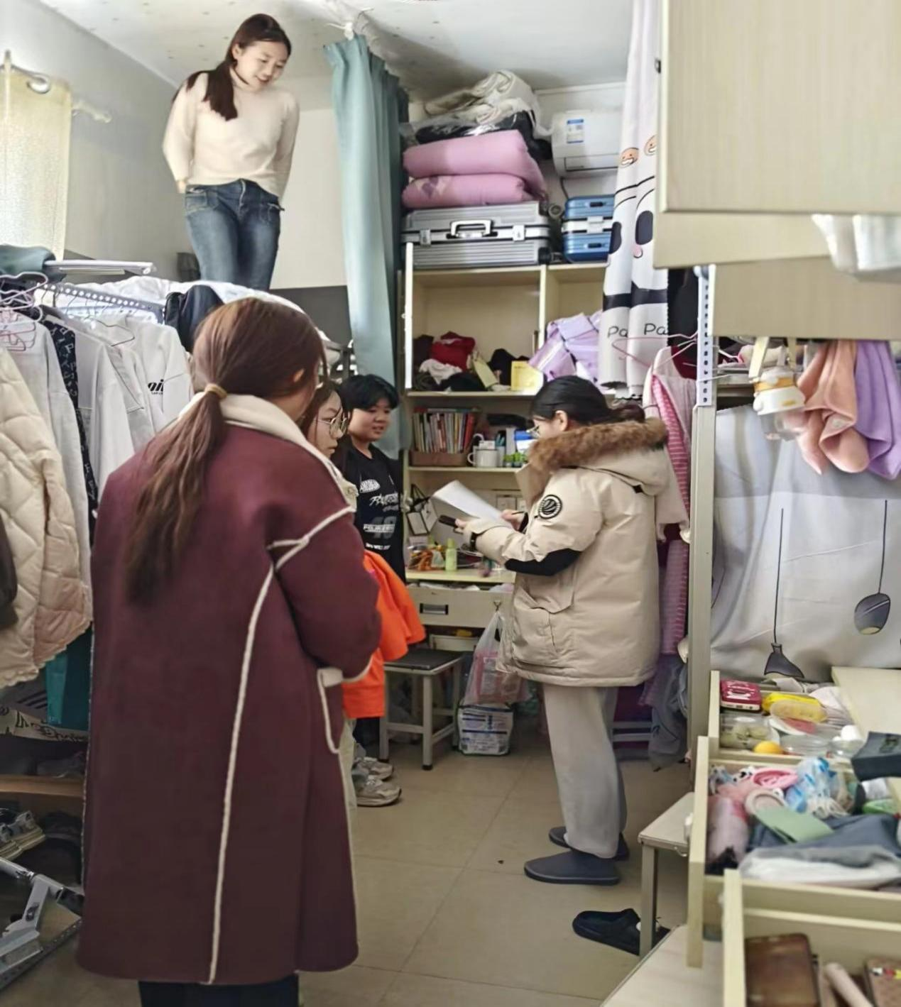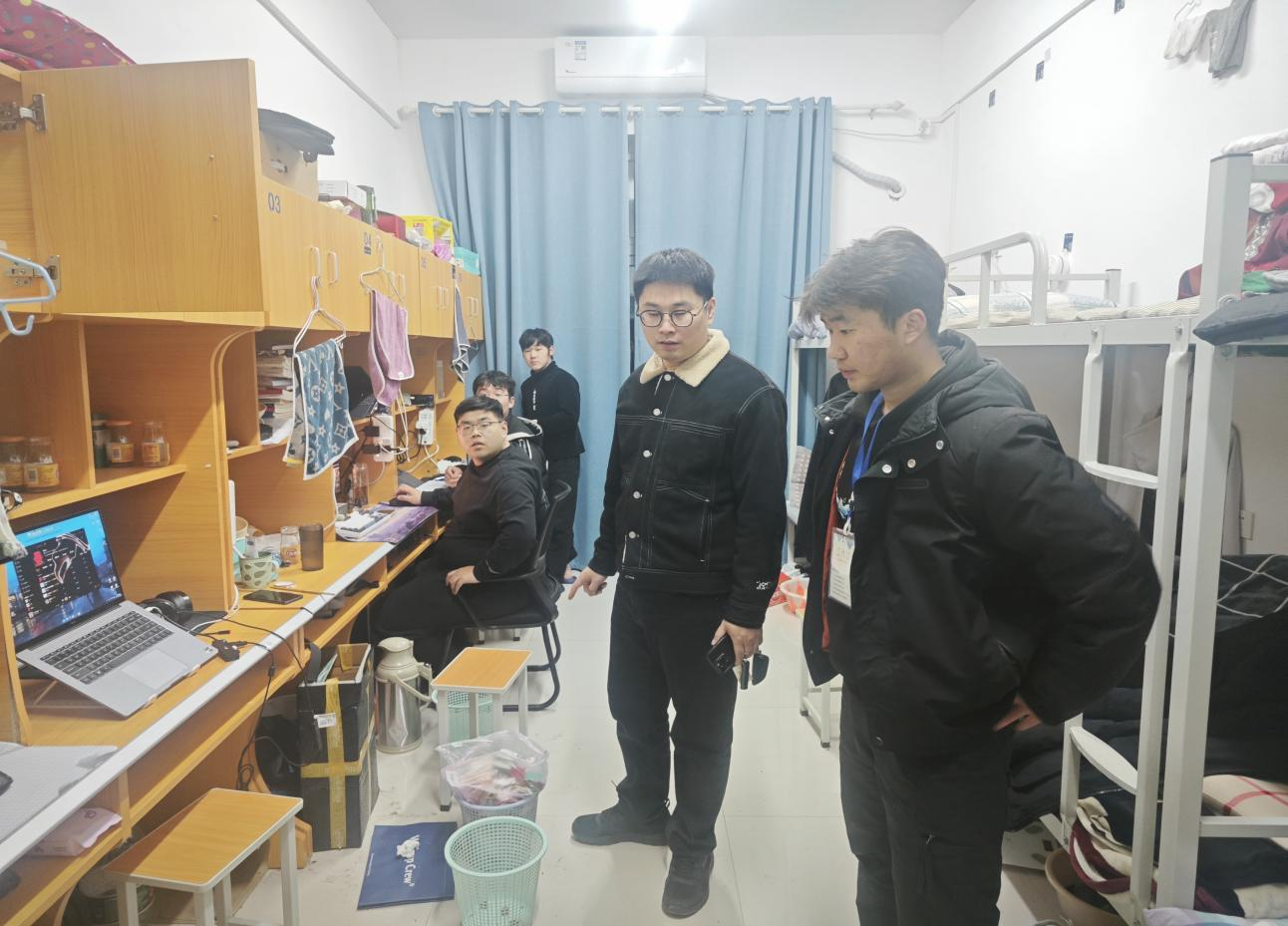 为进一步加强宿舍安全卫生管理工作,强化安全意识,筑牢安全防线,督促学生在新学期培养良好的生活习惯和安全意识,营造安全整洁的住宿环境,2024年3月8日,信息工程学院党总支副书记蒋欣哲、学工办主任常昆带领各班辅导员老师、学生会成员深入学生寝室开展安全检查工作。