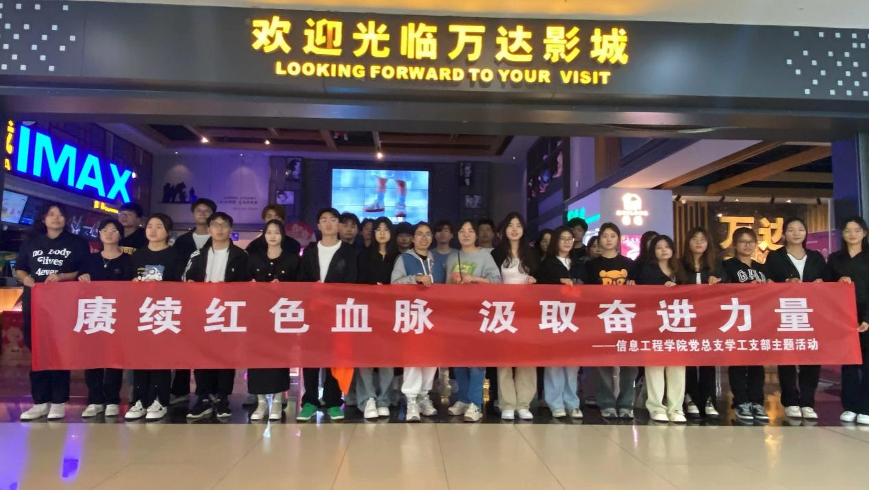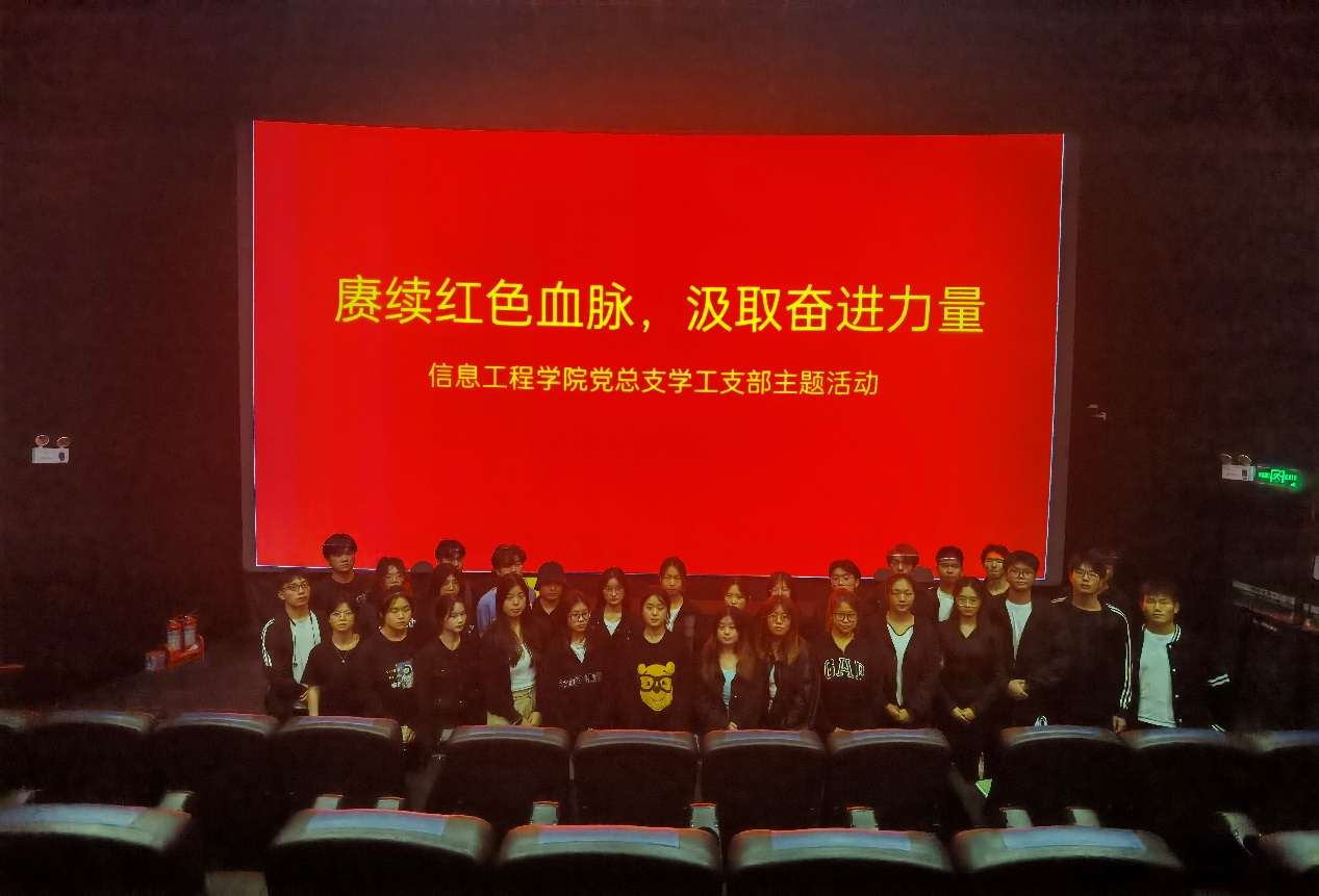 为深入学习习近平新时代中国特色社会主义思想,进一步弘扬爱国情怀、传承红色基因。信息工程学院党总支学工支部于2023年11月18日,组织部分党员和入党积极分子开展了以“赓续红色血脉 汲取奋进力量”为主题的红色观影活动。