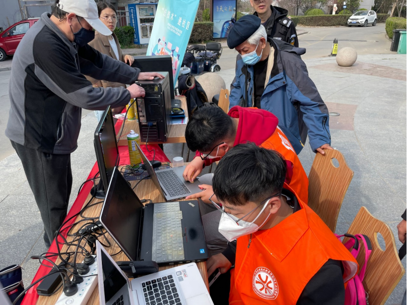 为深入学习宣传贯彻党的二十大精神,深入贯彻落实习近平总书记关于志愿服务的系列重要指导批示精神,以实际行动书写新时代学雷锋的青春故事。2023年3月10日,信息工程学院志愿者发挥专业特长,联合开封市龙亭区午朝门办事处文昌社区开展“送技术,进社区”志愿服务活动,为社区群众解决电脑问题。