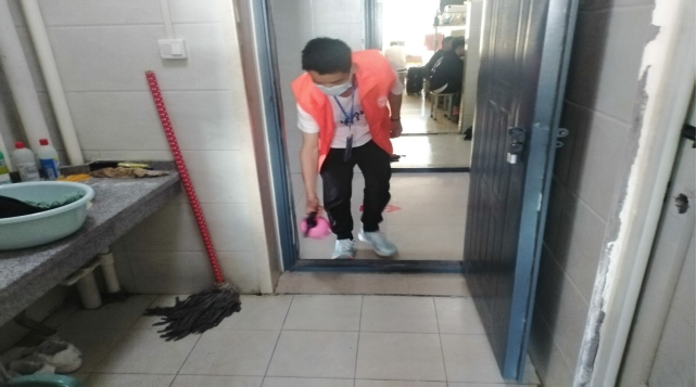 我院志愿者们合理分工,相互配合,带着配置好消毒液,对宿舍地面、洗手台、门把手等区域进行全面消杀,确保全覆盖、零死角。同时提醒同学们注意个人卫生和宿舍卫生,宿舍要经常进行通风,领取的快递要拆封消毒后再带入宿舍,要时刻注意佩戴口罩,减少病毒传播的可能性。