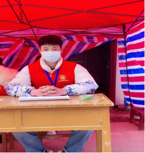 王闯,男,信息工程学院通信2101班。志愿服务内容:疫情防控卡点值班,排查报告工作。在本次疫情防控中,他志愿加入南阳市青年志愿者团队,奔走在村巷道之间。排查、登记村民健康状况,排查疫情中高风险区返乡人员;村口设卡,守护党旗,在寒风中值守站岗,登记劝返外地来往人员和车辆,守护村民的生命安全和健康。
