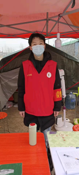 魏慧茹,女,信息工程学院网络2103班。在此防疫工作中,她自愿加入兰考县青年志愿者团队,为家乡防疫工作献出一份力量。在工作中对外来人员及外地返乡人员进行扫码出入,佩戴口罩,做好登记,做好个人防护等工作。为人民安全出一份力,希望能通过个人的努力早日结束疫情的束缚。