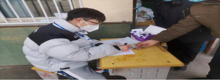 河南应用技术学院信息工程学院人工智能2101的王海江同学也积极参与了疫情防控志愿活动。他在自己的家乡滑县,为村民提供核酸检测方面的帮助,耐心的回答村民提出的问题;在做核酸检测时负责维持现场秩序,号召村民们有序排队,全程口罩,间隔一米。同时帮村民们填写有关核酸检测的所有信息。在此次活动中,“全员核酸”是命令,但人手短缺却成了重中之重,作为一名大学生,他果断将自己献身于疫情,没有一丝犹豫,为青年竖起了榜样,也让当地的干部们见证到了青年的担当。