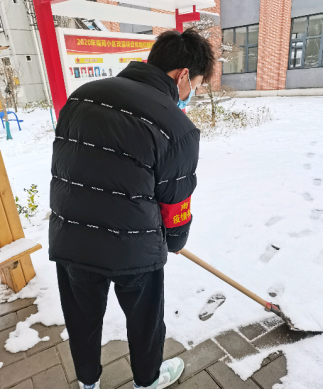 河南应用技术职业学院信息工程学院计算机2002的张广威同学,面对家乡接连几天的暴雪,导致道路结冰,行人、车辆出门不便的情况,他积极跟随社区在开封市禹王台区参与道路清理积雪志愿活动。他说:“他所做的只是一件力所能及的小事,当我看到社区的人们可以轻松出门,就会有一种自豪感,希望能够用自己的坚守与奉献温暖他人。”