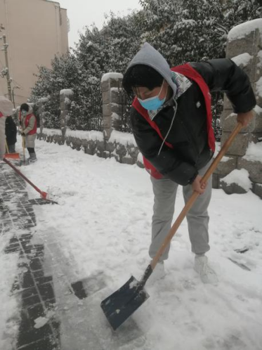 强降雪过后的河南陷入了一片美好的寂静。随着大雪的落下也为城市各地道路交通埋下了隐患,为人们出行带来了诸多不便。信息工程学院的学子们主动请缨,积极加入到本次“扫雪大作战”中。刺骨寒风中的铁锹与鲜艳的红色马甲为寒冷的冬天带来了一私暖意。