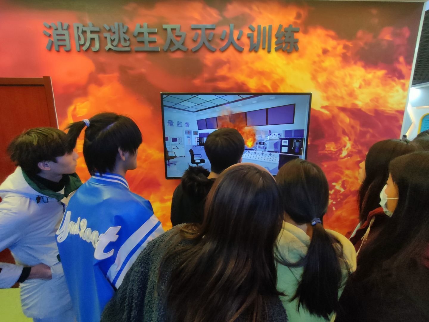 第四项:VR逃生,刺激的虚拟逃生让同学们身临其境地经历了一场难忘的危险逃生,使同学们在以后能够从容冷静的面对危险。