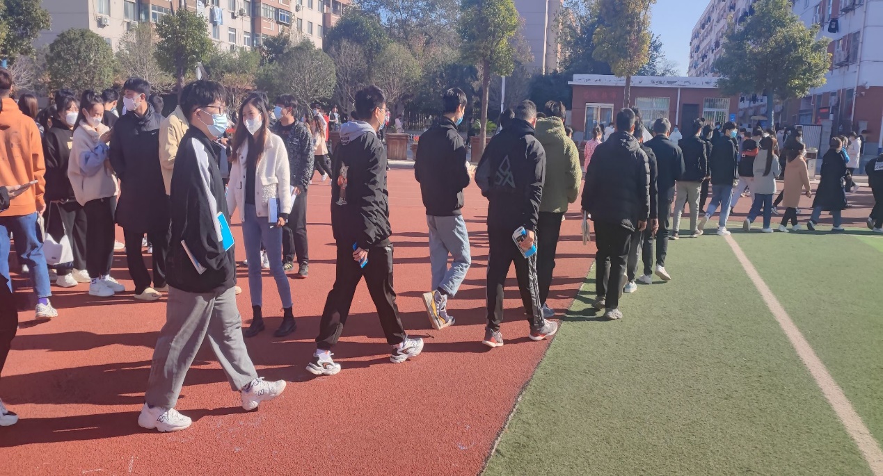 采集过程中,在信息工程学院学生会干部的引领下同学们有序地进入检测通道前往检测点进行采样,整个采集流程时刻保证做到每人一米以上安全距离,不插队、不交谈、不聚集,严格管控人员出入,采样结束后迅速返回,不得逗留;医务人员严格按照检测规范流程进行扫码登录、核酸采样等工作,在这场疫情防控战役中,全体人员讲“速度”、重“力度”、有“温度”,保证了此次核酸检测过程规范有序、精准高效。