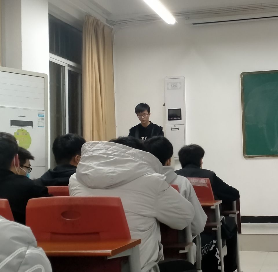 会议最后,由学生会新成员上台发言做自我介绍,让大家更好的相互交流、了解、认识,方便后期工作的开展进行。