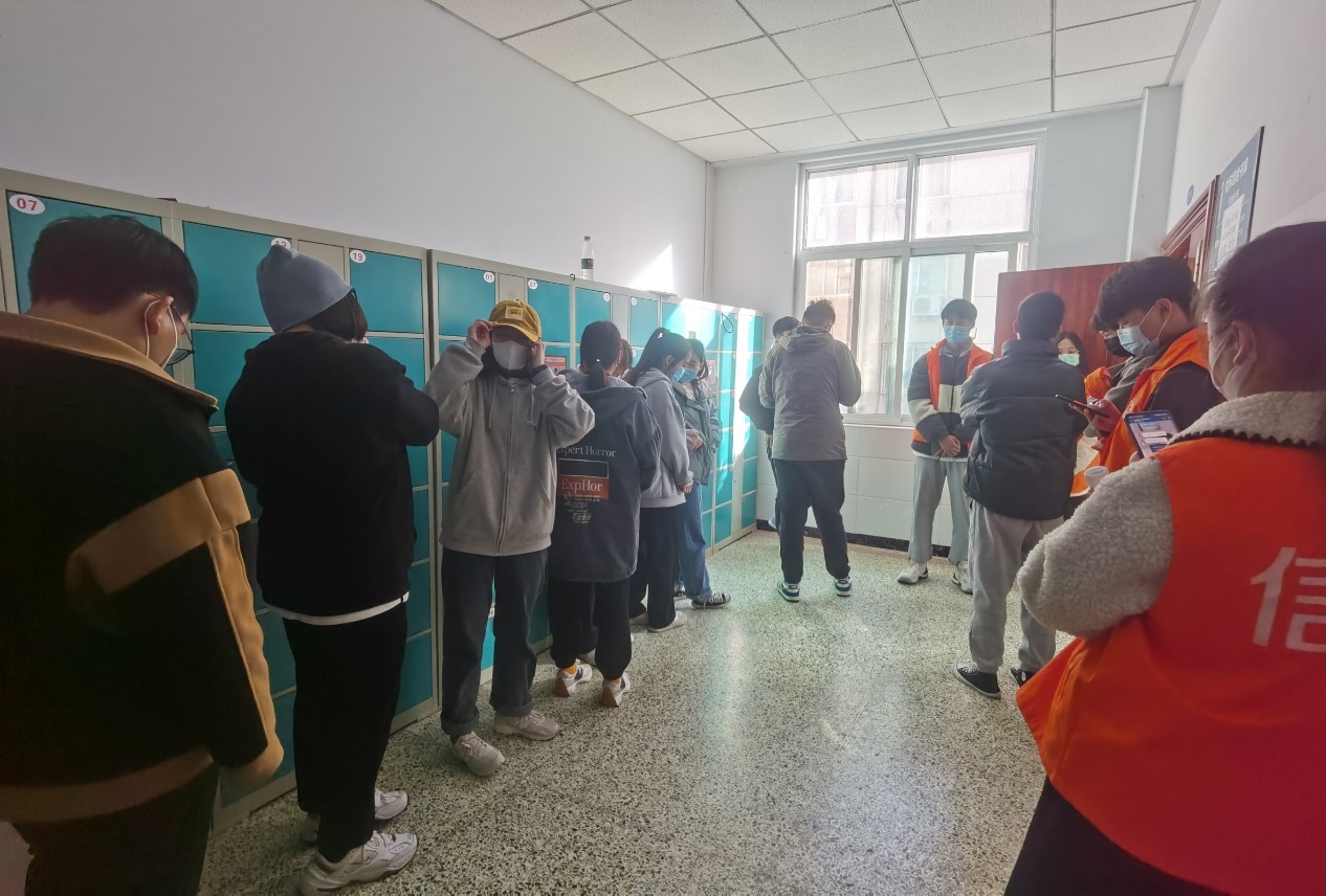 比赛开始前,我院参赛学生在信息工程学院学生会成员的协助引导下陆续到场,并严格按照疫情防控要求全部全程佩戴口罩。比赛分为六人一组,在六人抽完线索后进入书库开始计时,根据线索找全书本,在规定的时间内将图书找出并交付到指定地点并由评委老师记下所用时间,对照书本是否准确。