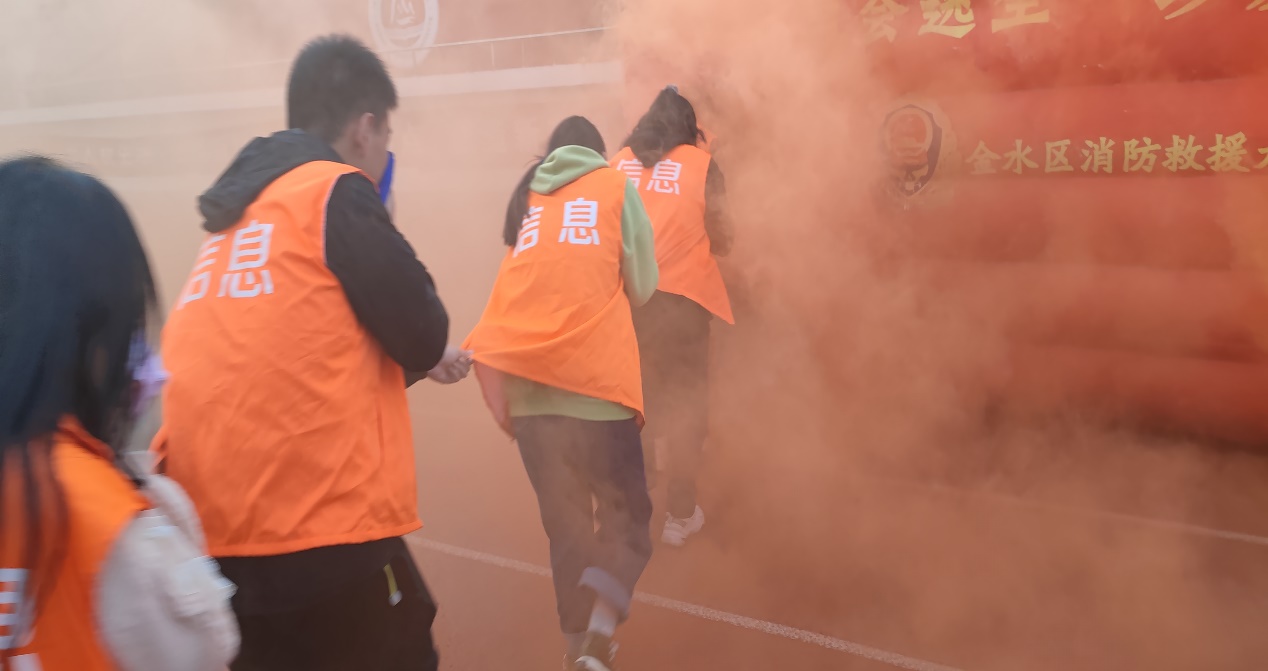 本次消防逃生演练九游体育特邀请了河南省应急救援协会安全专业委员会教员王平平参谋现场指导,主要从消防知识培训和现场模拟实操两个环节展开。活动开始前,信息工程学院参加人员按照逃生要求自带湿毛巾在学生会负责人的带领下有序地到达指定地点。首先教员为大家讲解进了入逃生屋的注意事项和消防安全知识,随后,参训人员在教员的现场指挥下按秩序进入了“消防逃生体验屋”,同学们用湿毛巾捂住口鼻,弯腰按照规定的路线,安静快速地往安全地区撤离,真切体验了在狭小黑暗的空间里发生火灾后进行疏散逃生和自救的方式。