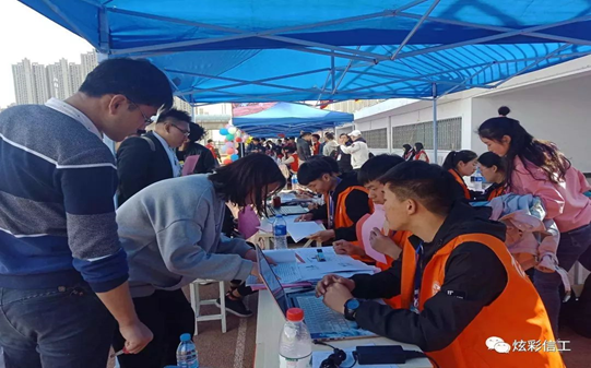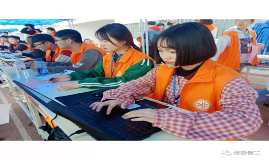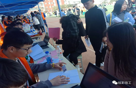 在三月三十日早晨7:00,信息工程团学会已经在操场主席台南边搭好帐篷在等待可爱的小学弟小学妹们报到!有的给学弟学妹统计信息,有的给他们指引考场以及参观学校,也有一部分人在布置考场。总而言之,所有在场的工作人员都各职其责。
