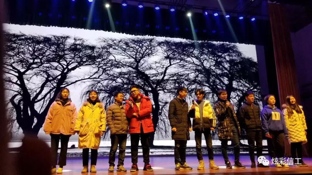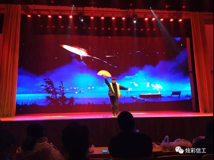 随后杨书记上台讲话,他肯定了信息工程学院团学会成员在2018年的工作,并对以后的工作提出了殷切希望。而书记带来的《少年壮志不言愁》的歌曲表演更是感染了在场的每一位人员。晚会中途为了让大家的热情继续高涨,安排的游戏互动环节,更使得这次晚会锦上添花。游戏结束,歌曲《遥远的你》、《左手右手》、《后来》等节目轮番上场,或浪漫温馨,或轻快悠扬,或活泼动感,风格各异,变幻多姿,让观众心旷神怡,沉醉其中。多姿多彩的演出节目展示了信工学子对青春的畅想,他们用自己独特的方式演绎着青春的故事,也表达了对新年到来的美好祝福。美好的时光总是匆匆而过,晚会最终在昂扬的旋律中完美落幕。
