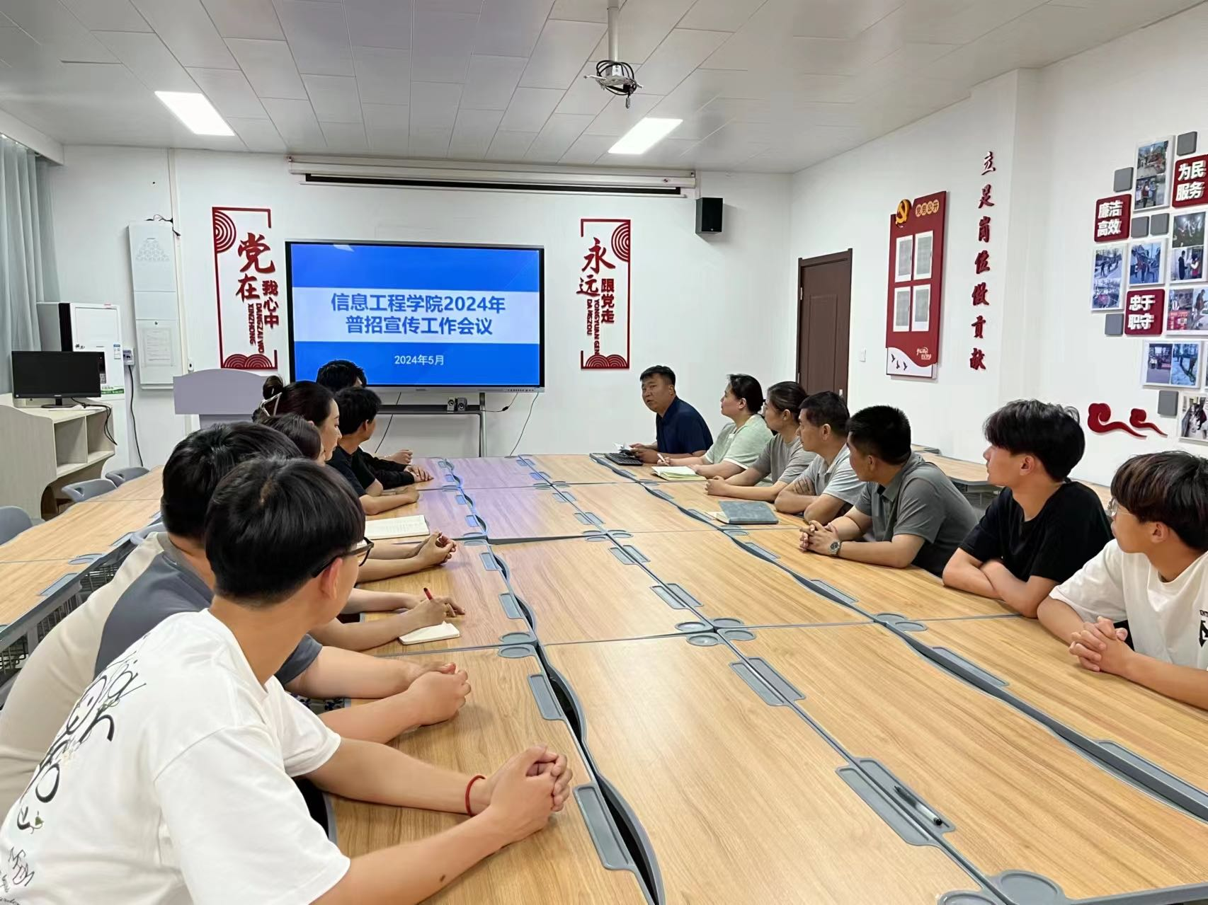5月28日下午信息工程学院在郑州校区A514会议室、开封校区C314会议室召开2024年社会实践学生(普招)招生宣传工作动员会。信息工程学院院长王雷、书记崔琳、副院长齐峰、副院长夏丽珍、副书记蒋欣哲、负责招生的老师和社会实践学生参加会议。会议由学工办主任常昆 。