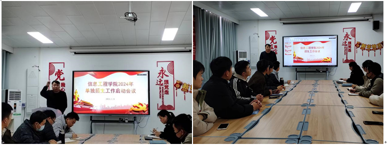 2024年1月9日下午,信息工程学院在郑州校区A514会议室和开封校区C314会议室同步召开2024年招生宣传工作动员会暨爱回母校、逐梦应院主题社会实践活动启动会议,信息工程学院中层领导出席会议,负责招生宣传的教师、辅导员、社会实践活动学生参加会议。