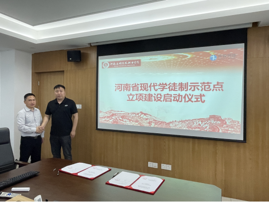 学校、企业、学生三方分别签署三方协议及师徒协议。中锐网络陈其俤副董事长介绍了中锐网络的发展和经营情况,并对前期“现场工程师学徒制试点班”工作进行了总结,对参训学生给予高度评价,提出希望能够进一步和校方在人才培养、竞赛合作、就业创业、双师培养、课题研究、实训基地建设等方面开展深度合作,通过现代学徒制的实施共同培育优秀的应用型、复合型人才,为社会发展和国家建设提供专业化人才供给和创新成果输出。  王雷院长介绍了学校信息工程学院在专业群模式、师资队伍、竞赛孵化、教学工程等方面的建设情况,并对校外实习实践基地、创新协同中心建设等提出工作要求,确定了校企双方实习实训和就业合作的基本框架, 为校企双方进行更加精准的人才对接,建立常态化、长效化合作机制夯实了基础。