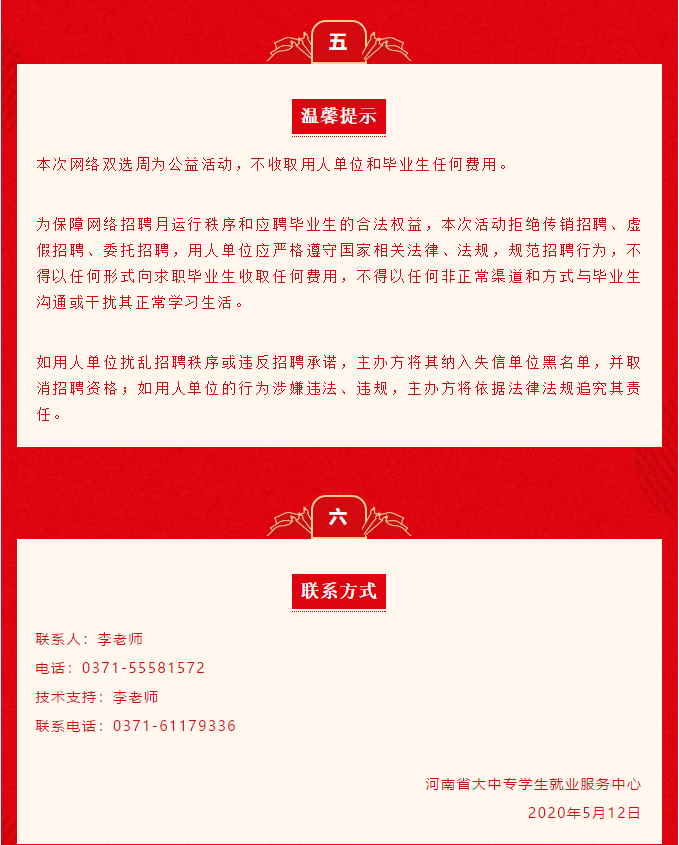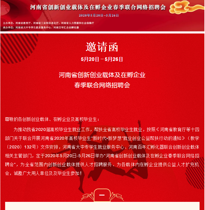 上一条:【招聘】最新!事业编!河南多地学校等事业单位公开招聘 下一条:【招聘】5月25-31日河南省2020年家庭贫困毕业生就业专场网络双选周邀请函