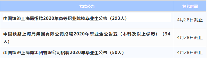 3. 已纳入《中国铁路上海局集团有限公司招聘2020届毕业生公告二》报名范围的院校不在此次报名范围内。