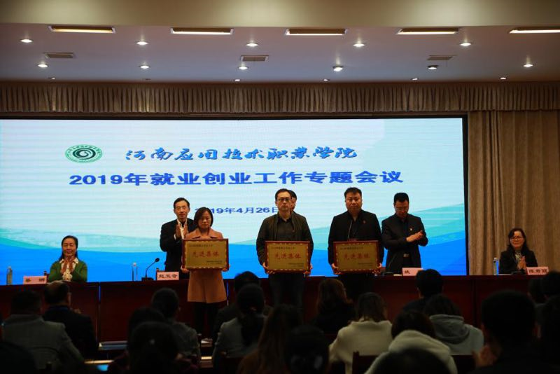4月26日下午,九游体育在实训中心二楼会议室召开2019年就业创业工作专题会议,学校党委书记秦书君,校长姚勇及其他校领导,各相关部门负责人及全体专兼职辅导员参加会议。会上,副校长赵玉奇宣读了《关于表彰2018年就业创业工作先进集体、先进个人的决定》,校领导为受表彰集体及个人进行了颁奖。我院就业工作表现突出荣获先进集体,杨明杰书记代表信息工程学院上台进行交流发言,王雷院长代表信息工程学院上台领奖。
